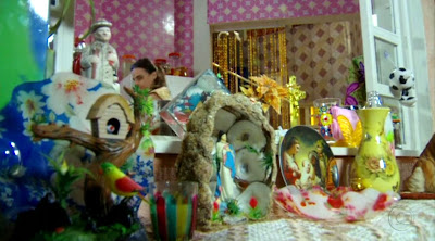 Dá pra ver que na casinha dela tem muito colorido, tem muito artesanato e muuuitos bibelôs!